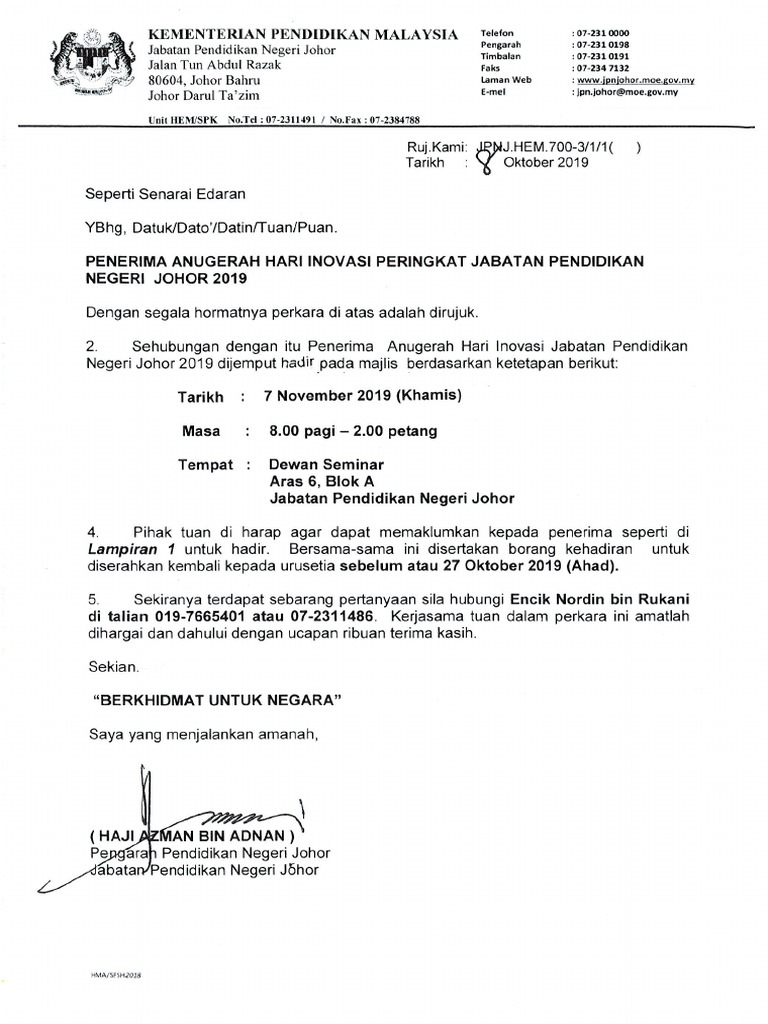Contoh Surat Pengesahan Kehadiran Hari Inovasi Pdf