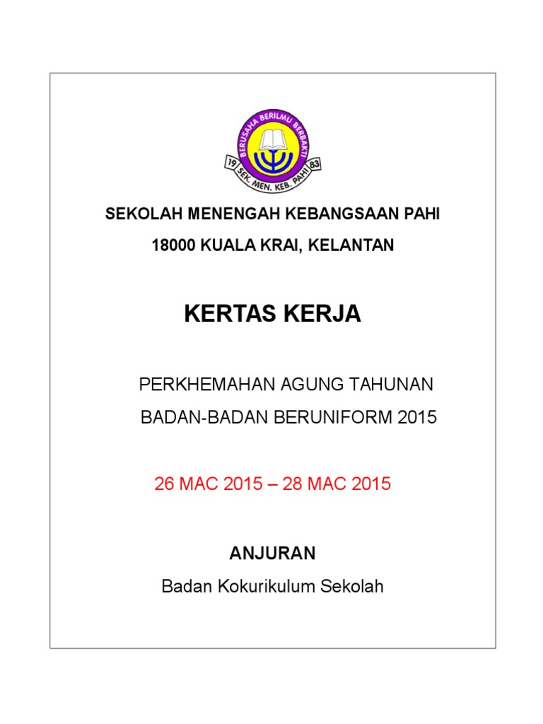 Kertas Kerja Perkhemahan Agung Tahunan Unit Uniform Pdf