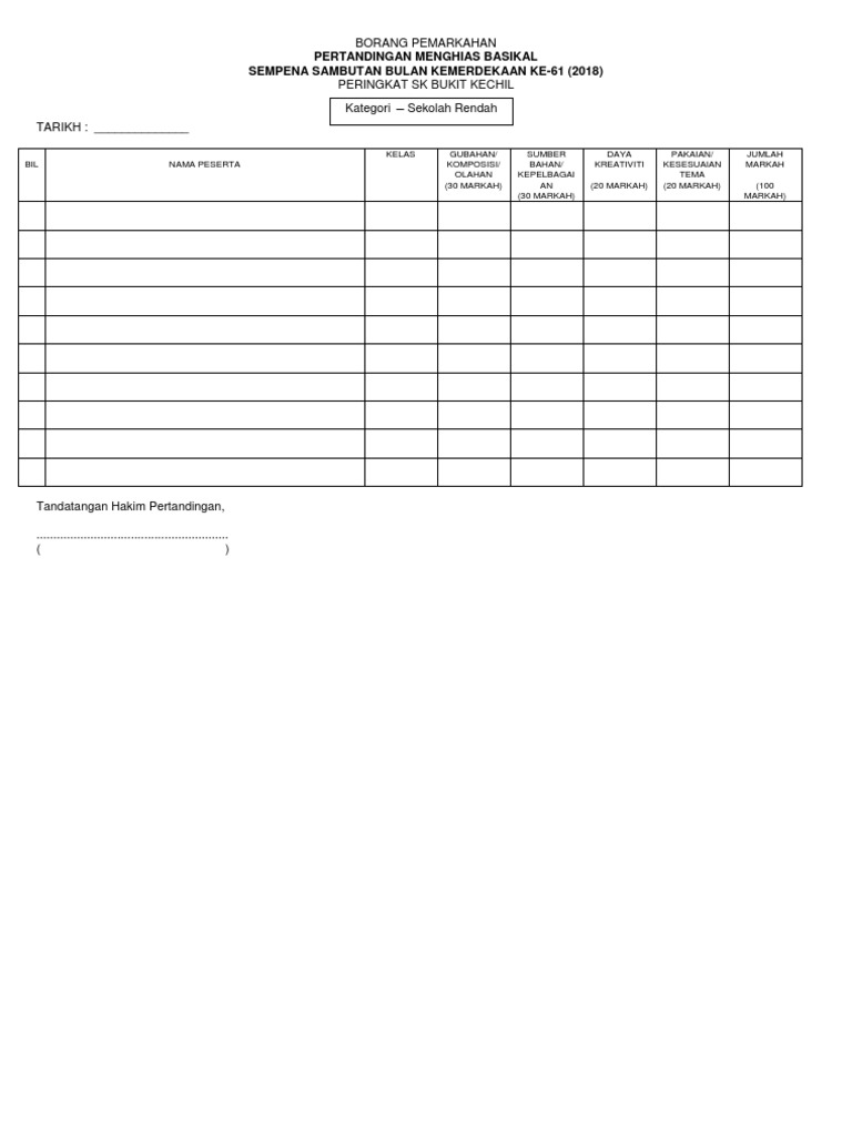 Borang Markah Pertandingan Basikal Berhias Pdf