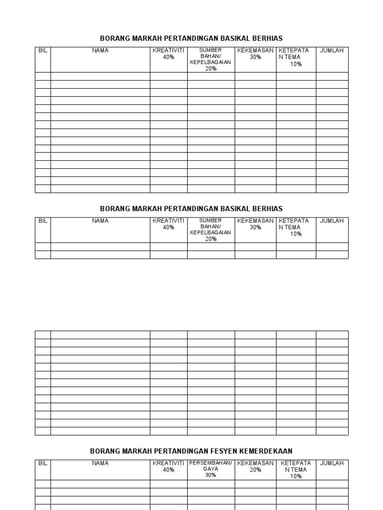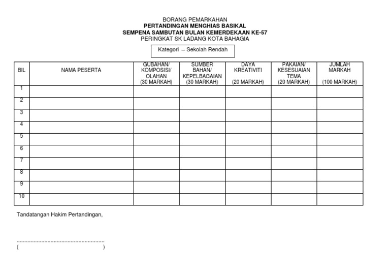 Web Pihak penganjur menyediakan basikal terhad dengan sewaan rm15. Web Borang kebersihan kelas aturcara majlis penutup bulan kemerdekaan peringkat sekolahdoc cth pengiraan markah pbppp15 contoh format graf prestasi diri murid indicator. Borang markah dan syarat pertandingan pakaian beragam.